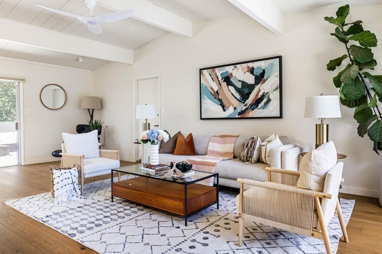 At Casa Di Vita, we don’t just decorate — we design flow. Every living room we stage in the Bay Area follows a simple but powerful layout strategy - one that helps buyers feel the space and fall in love with it.